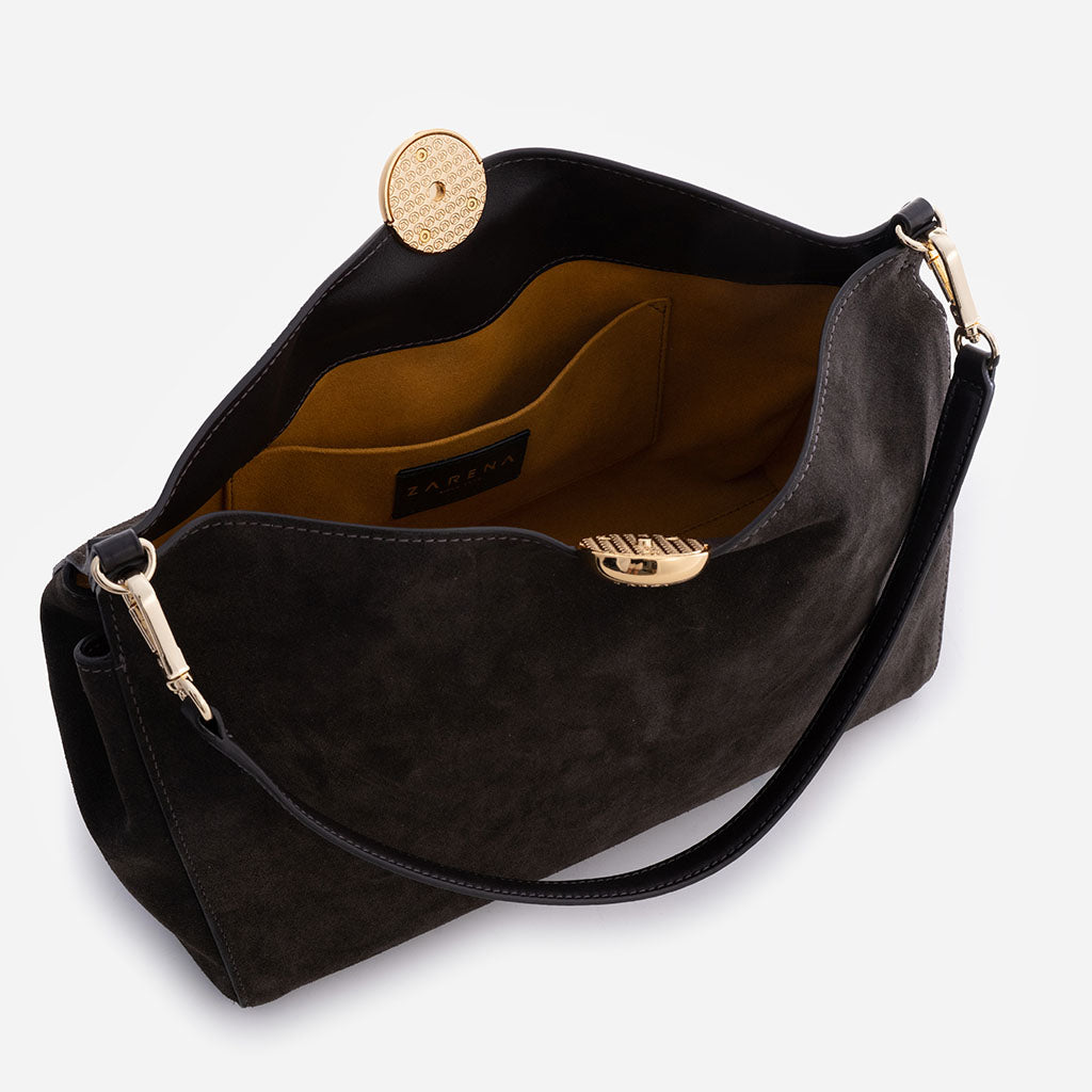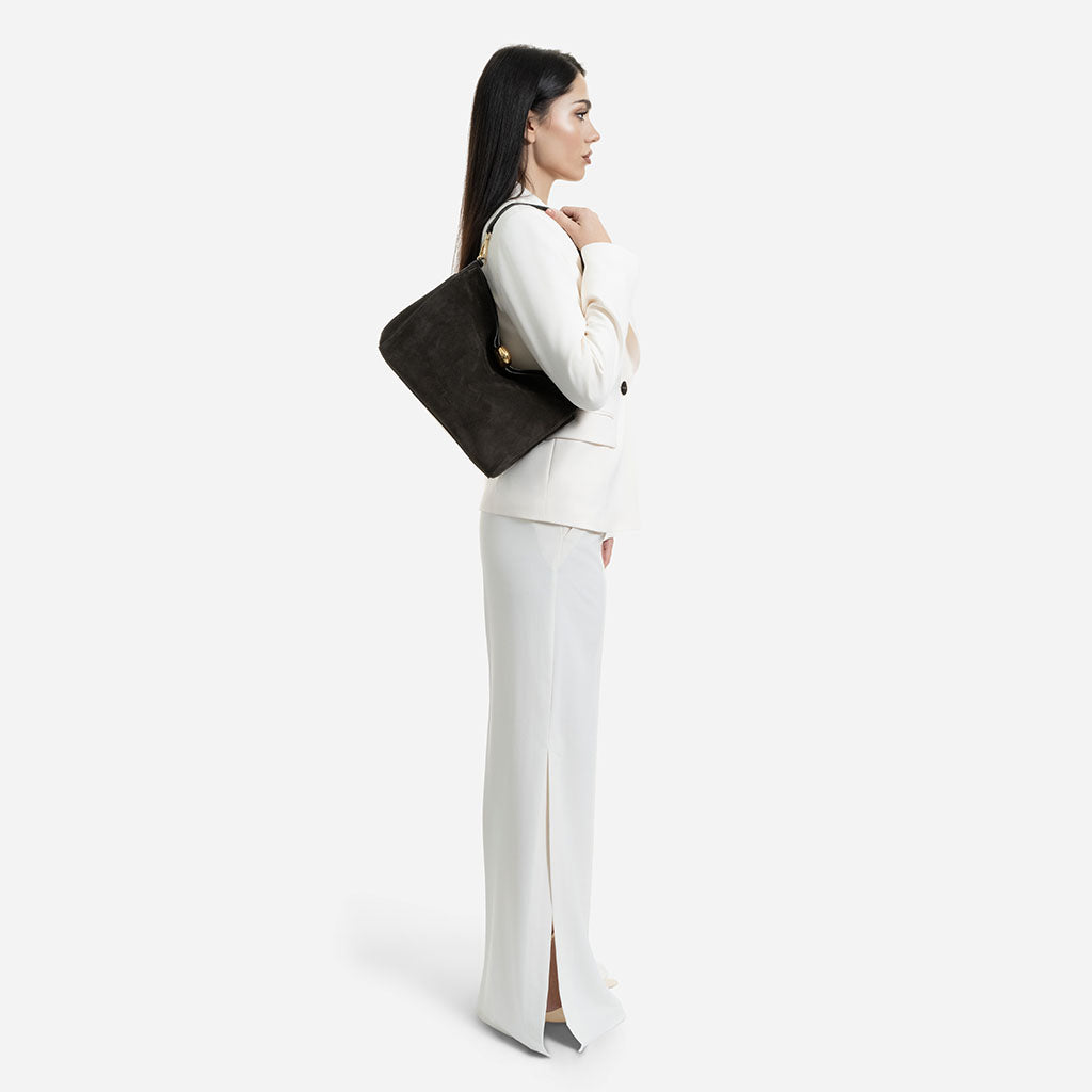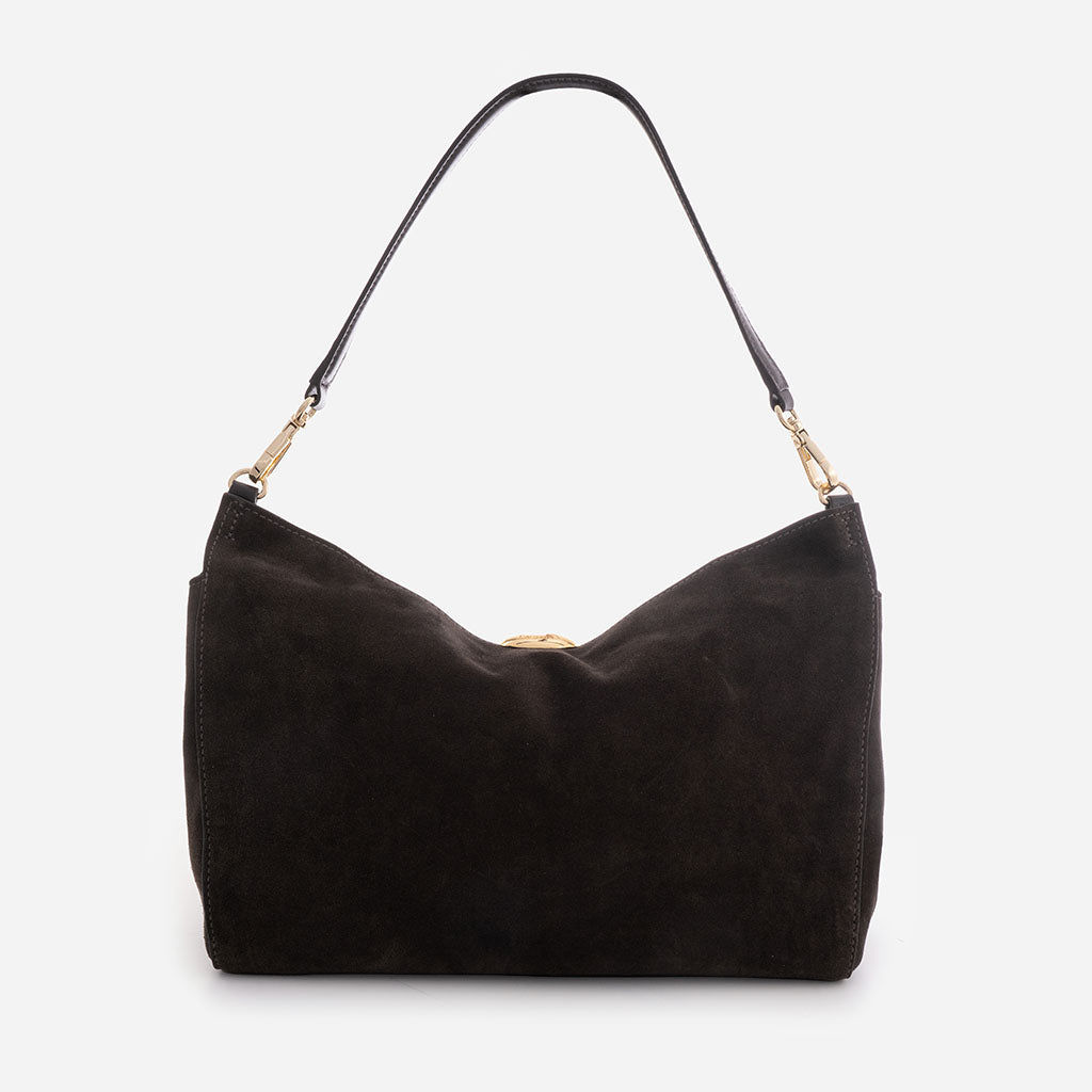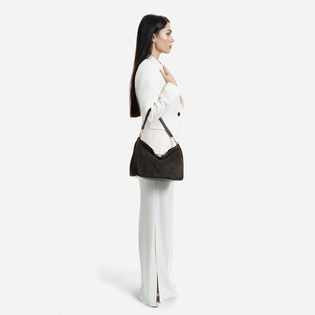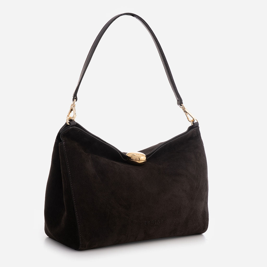Monica - Geantă de Umăr din Piele Întoarsă - Maro Închis