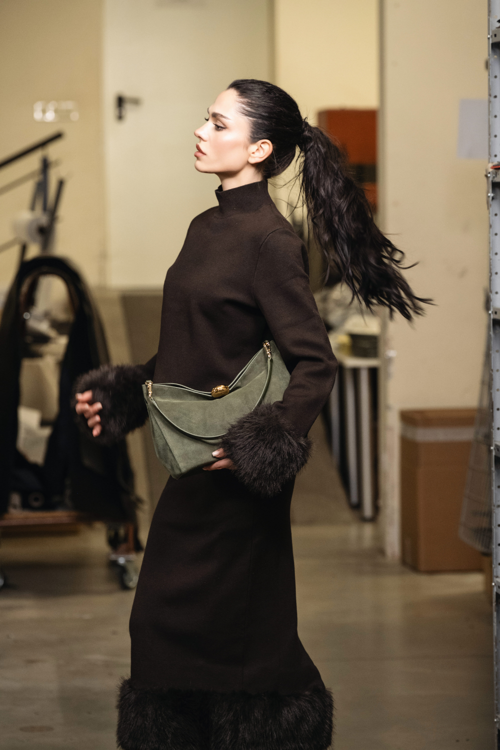 Monica - Geantă de Umăr din Piele Întoarsă - Verde