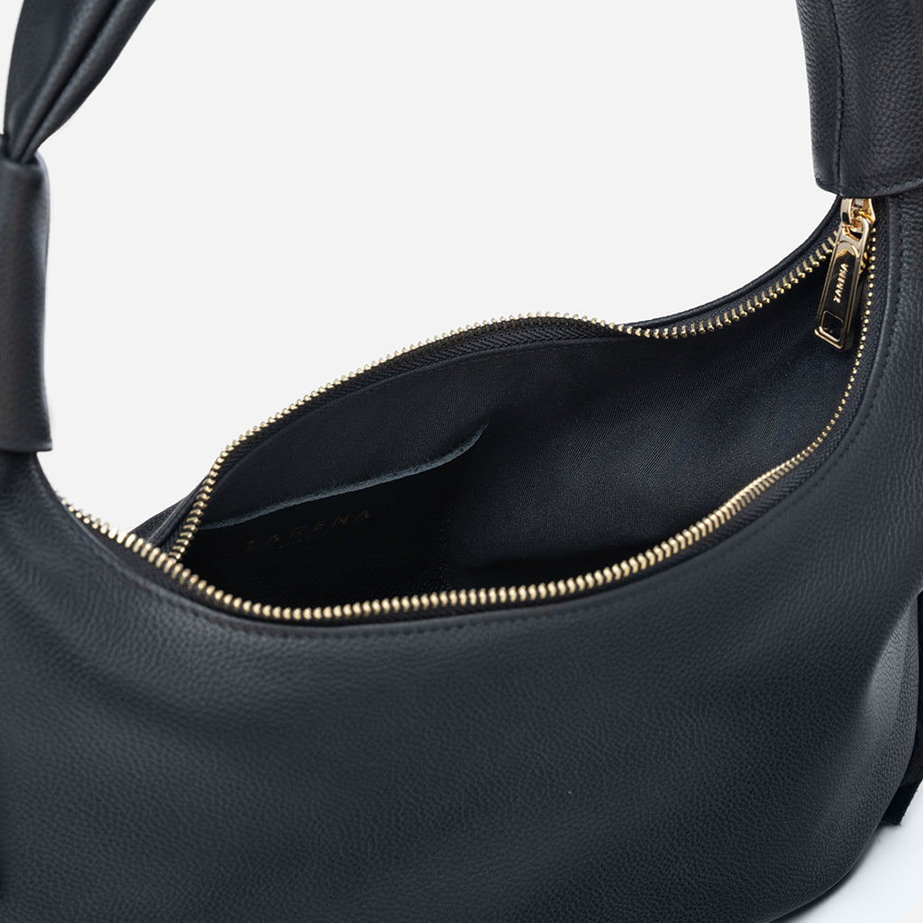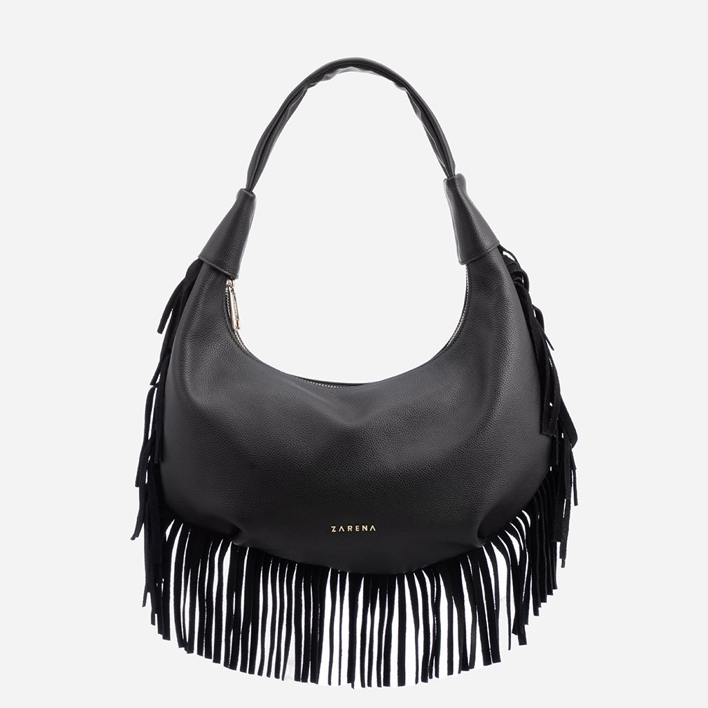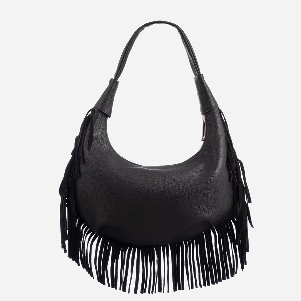 Simona - Geantă de Umăr cu Franjuri din Piele Întoarsă - Negru