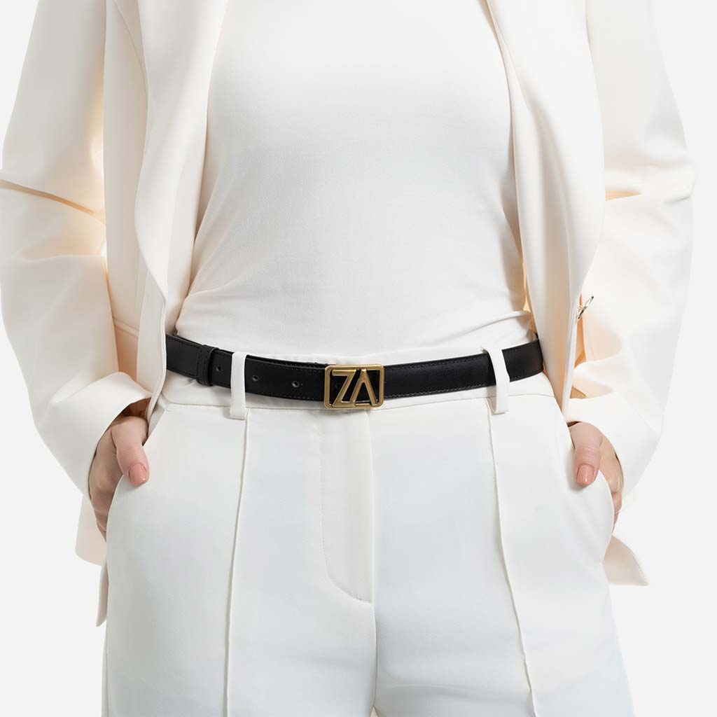 Curea din piele naturală cu cataramă ZA, 25 mm - culoare negru