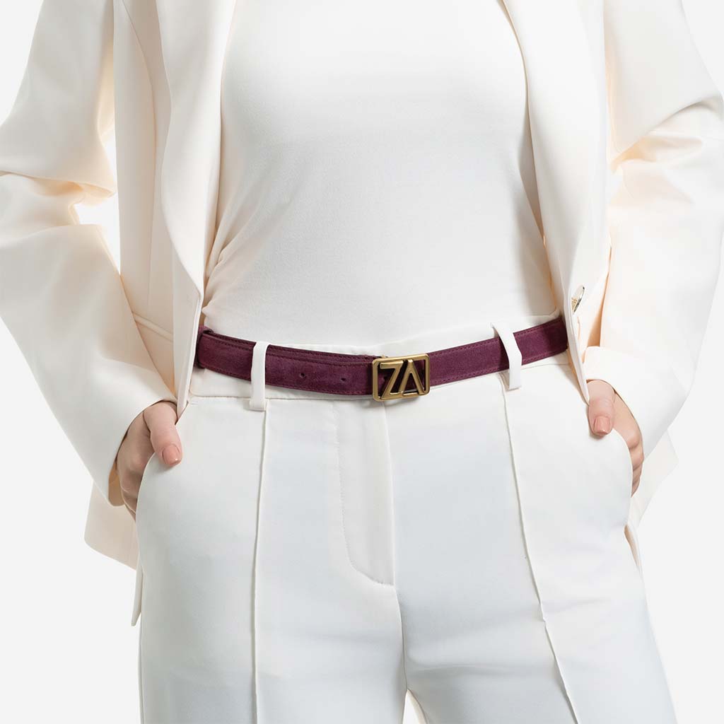 Curea din piele întoarsă cu cataramă ZA, 25 mm - culoare burgundy