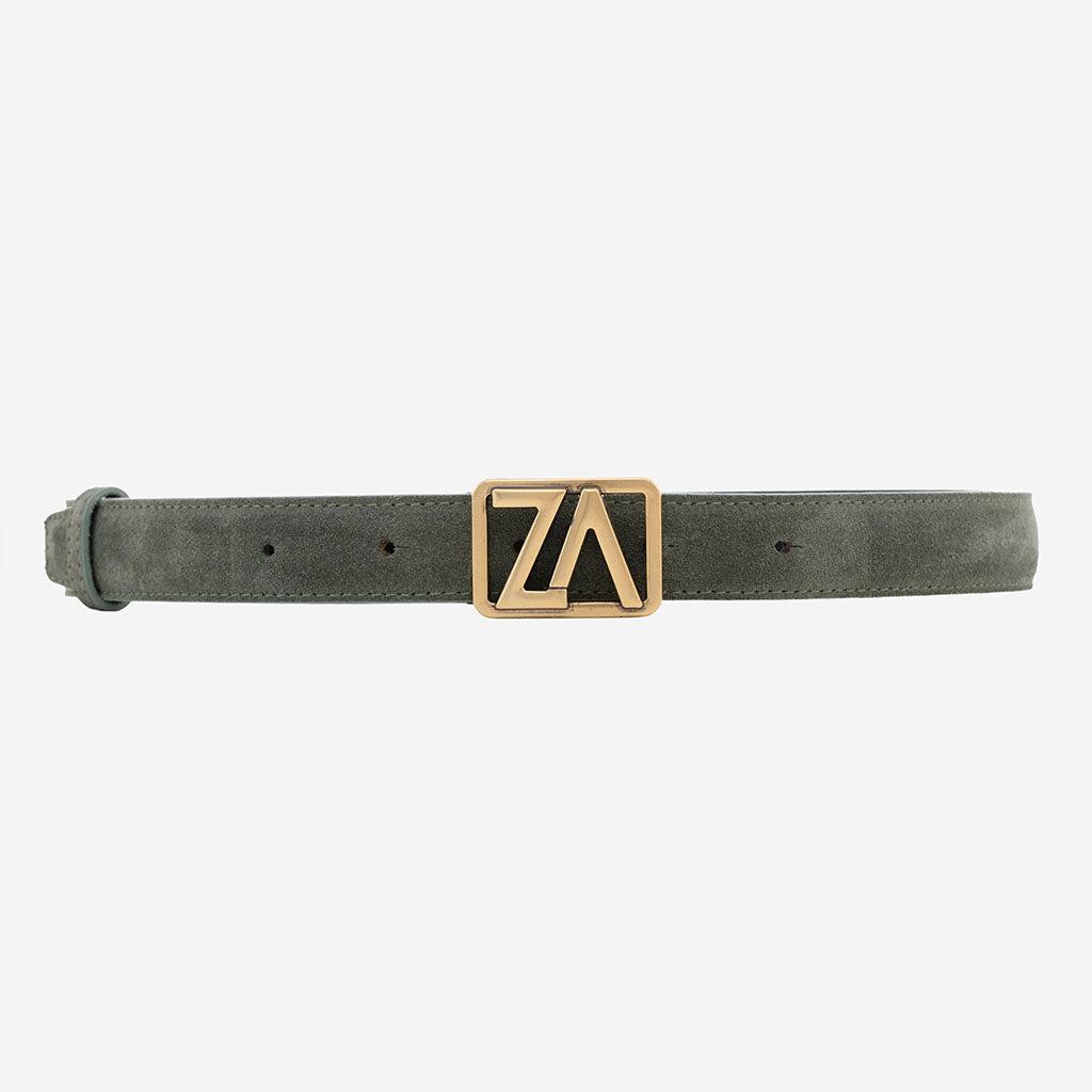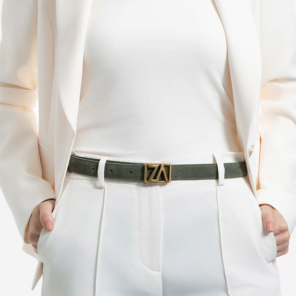Curea din piele întoarsă cu cataramă ZA, 25 mm - culoare verde