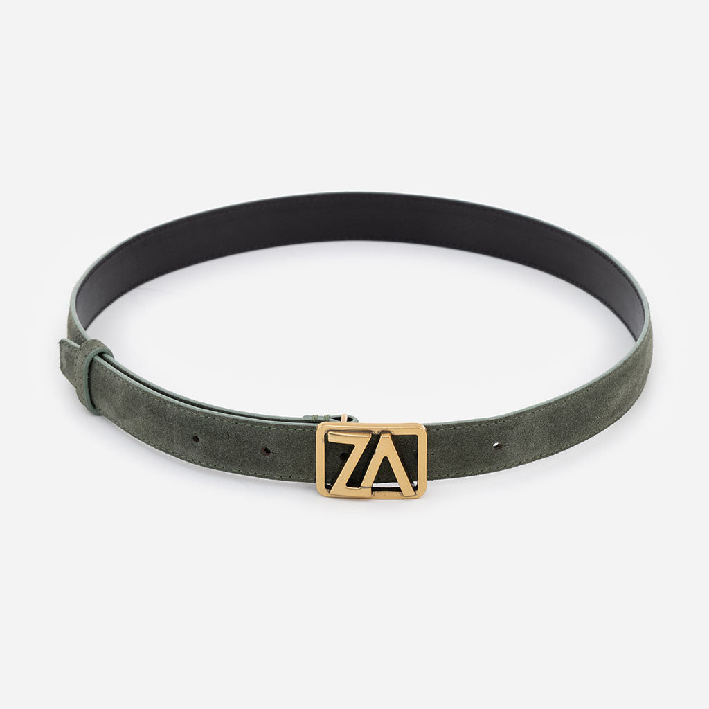 Curea din piele întoarsă cu cataramă ZA, 25 mm - culoare verde