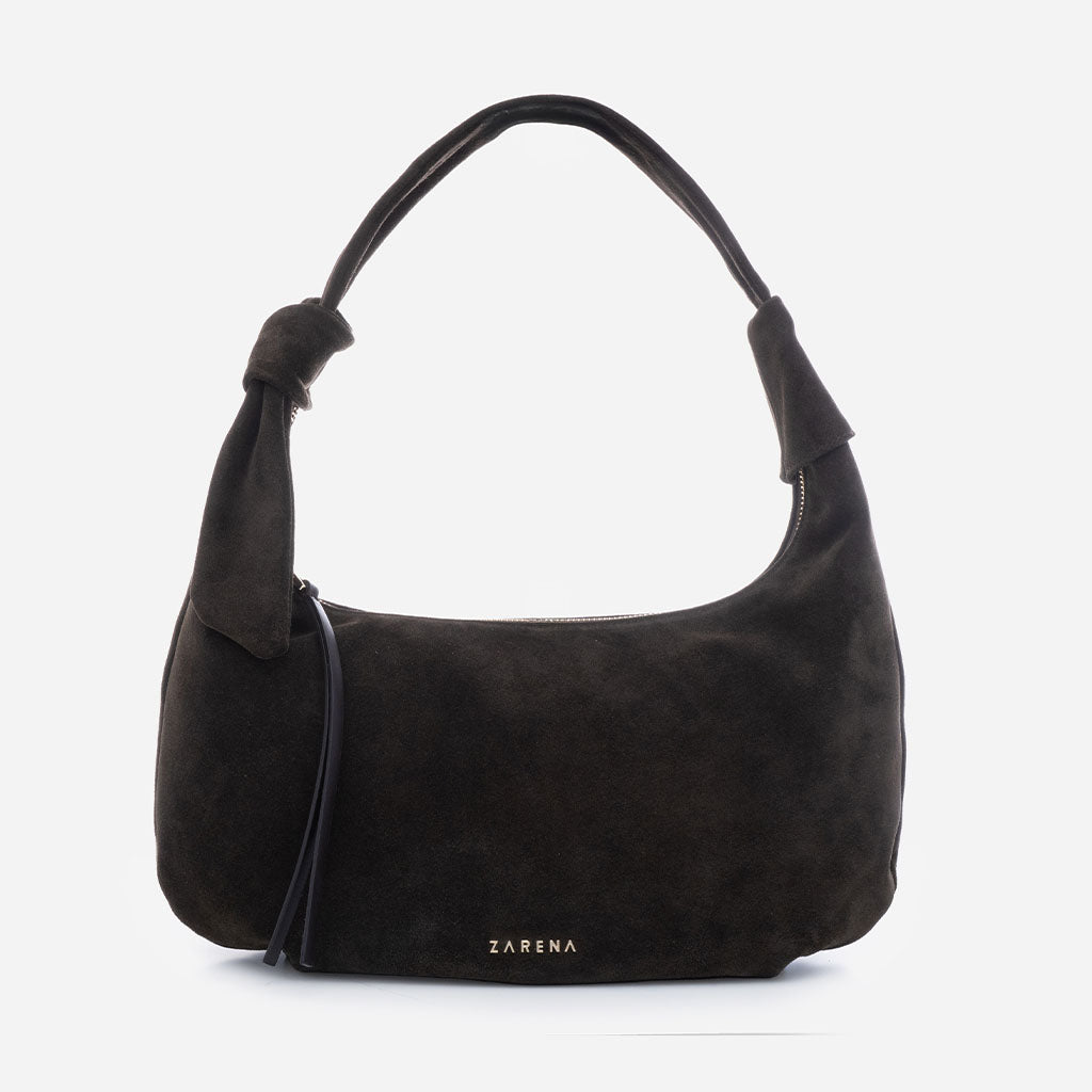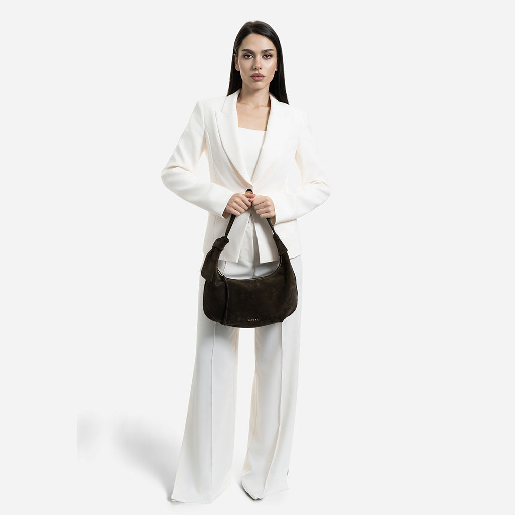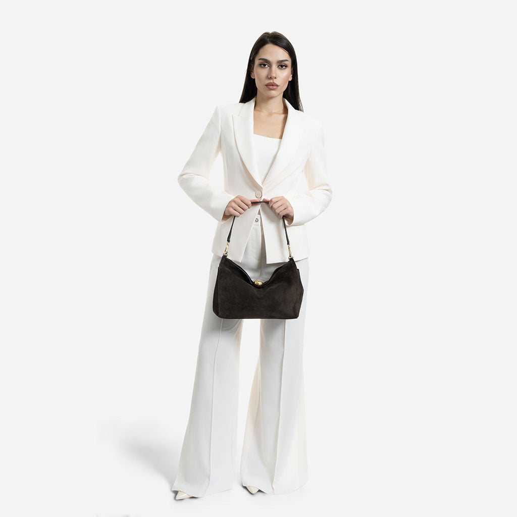 Monica - Geantă de Umăr din Piele Întoarsă - Maro Închis