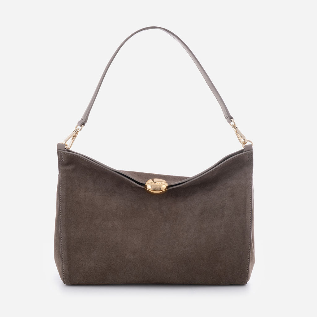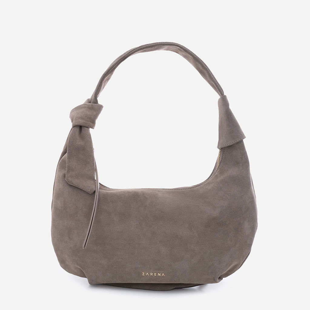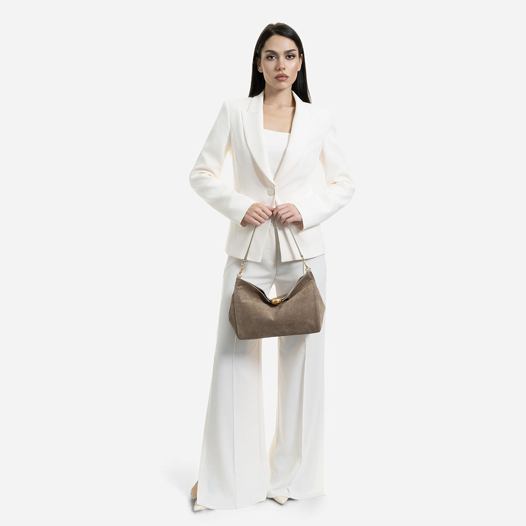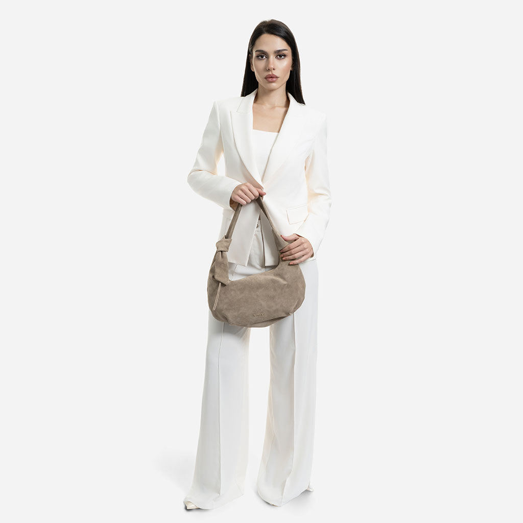 Monica - Geantă de Umăr din Piele Întoarsă - Taupe