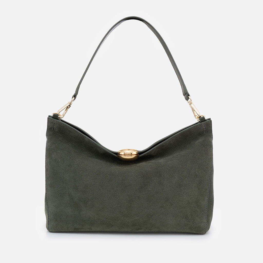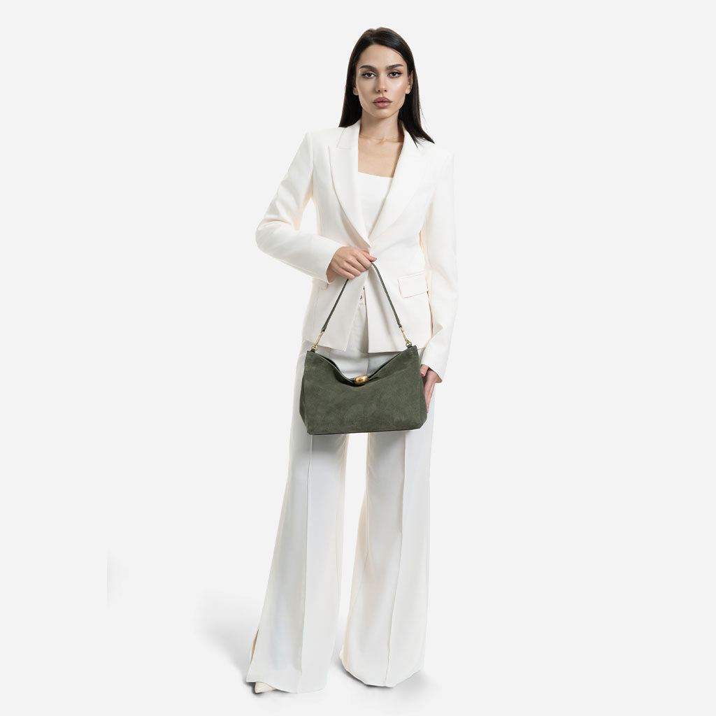 Monica - Geantă de Umăr din Piele Întoarsă - Verde