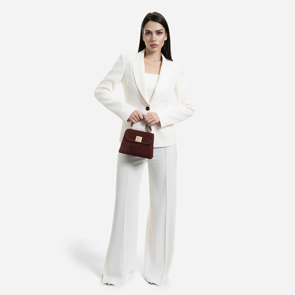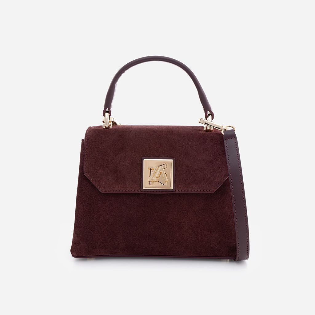Iris Mini – Geantă Mică Crossbody din Piele Întoarsă – Burgundy
