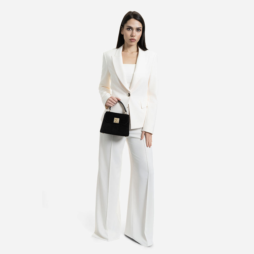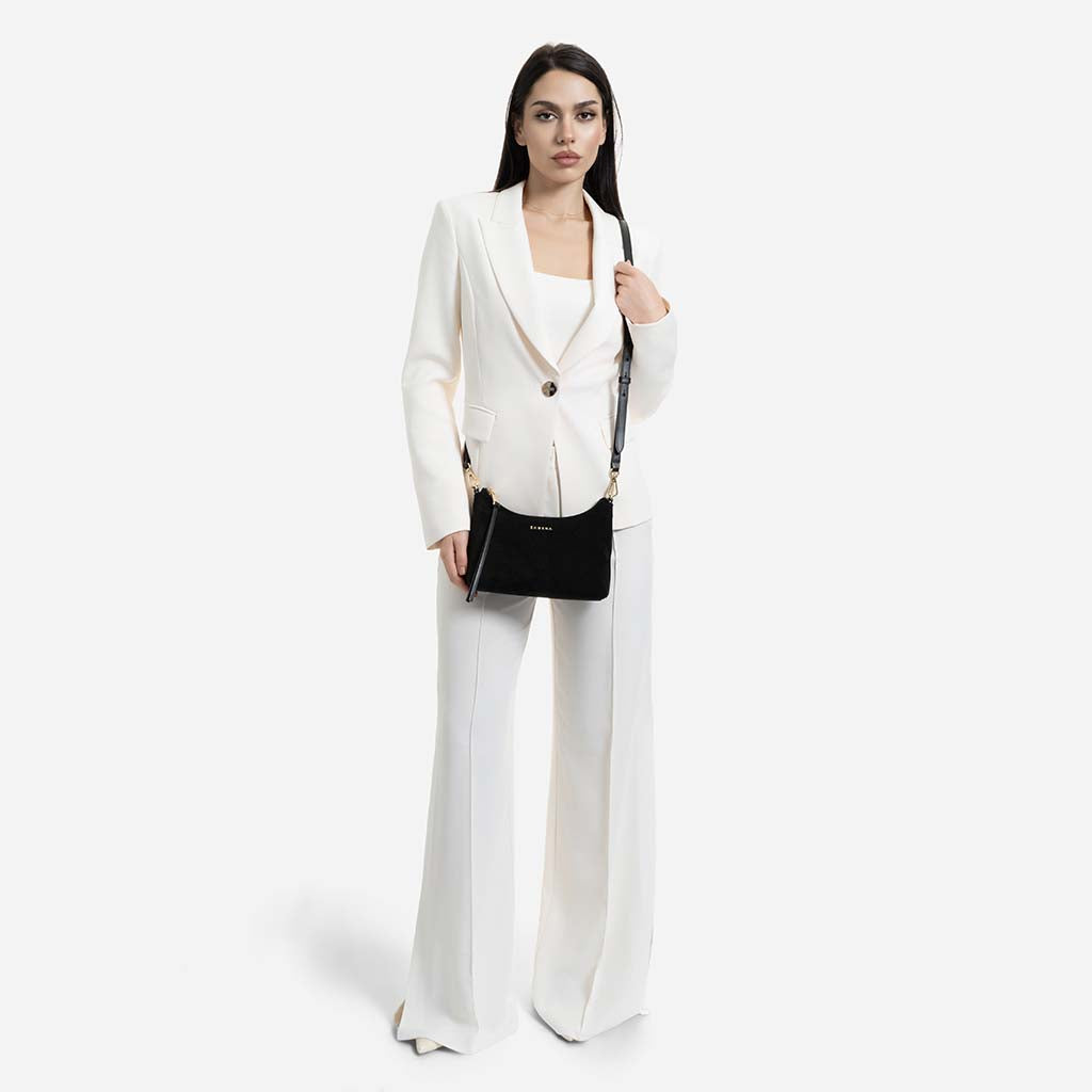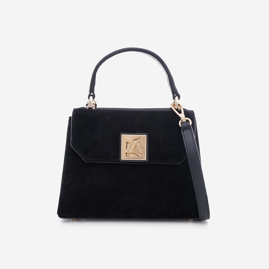 Amy - Geantă Crossbody Mică din Piele Întoarsă – Negru