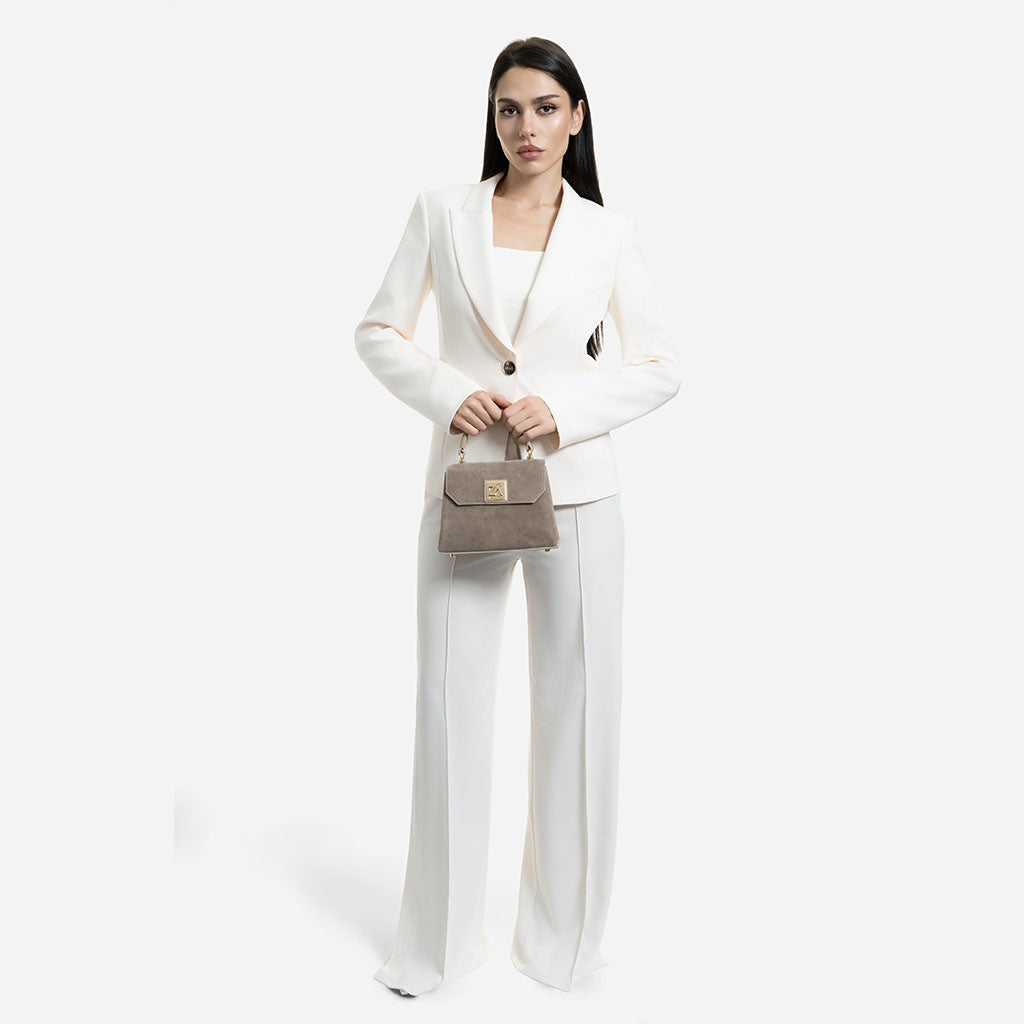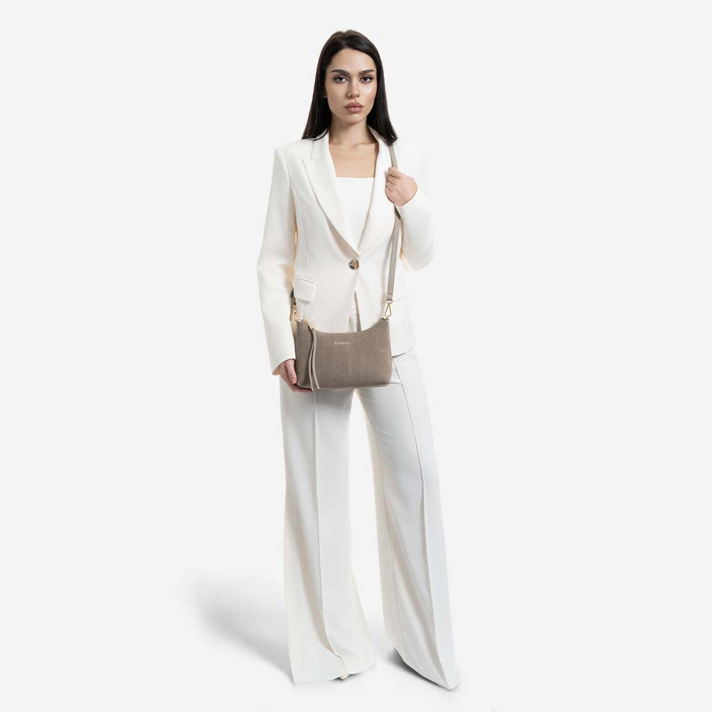 Amy - Geantă Crossbody Mică din Piele Întoarsă – Taupe