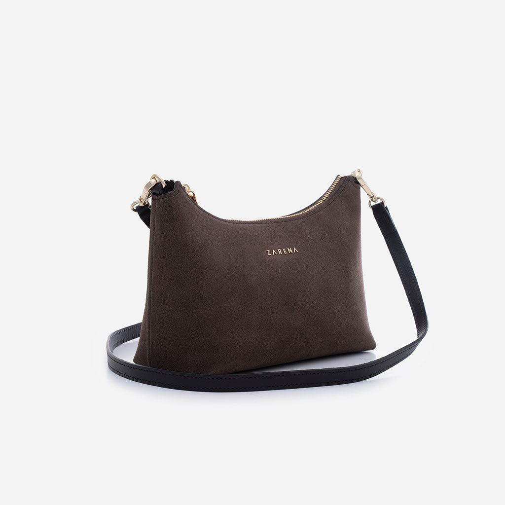 Amy - Geantă Crossbody Mică din Piele Întoarsă – Maro Închis