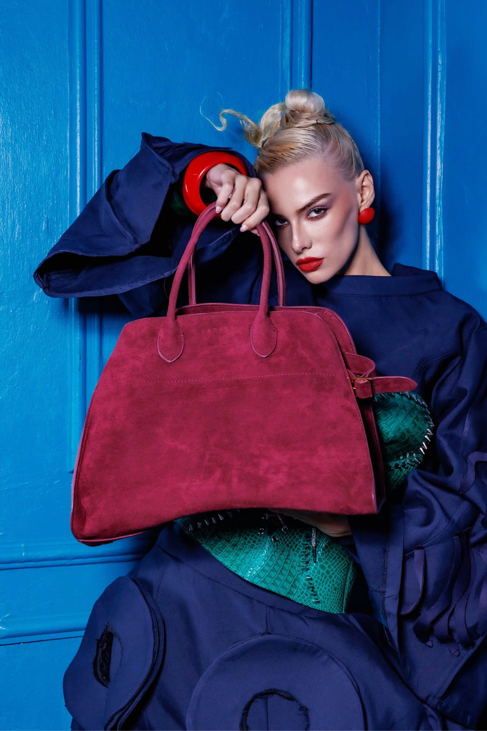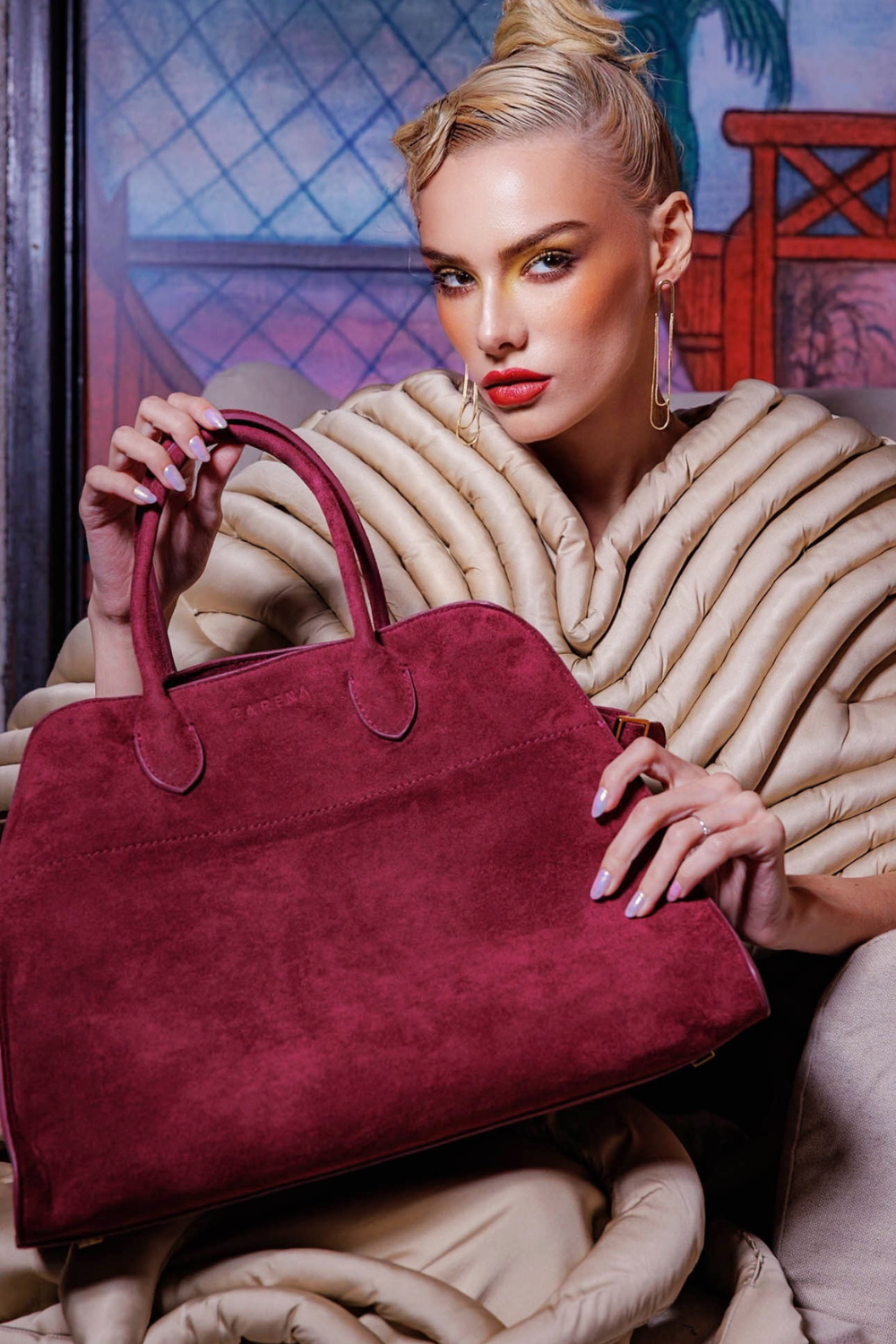 Valentina – Geantă Shopper din Piele Întoarsă Ecologică– Burgundy
