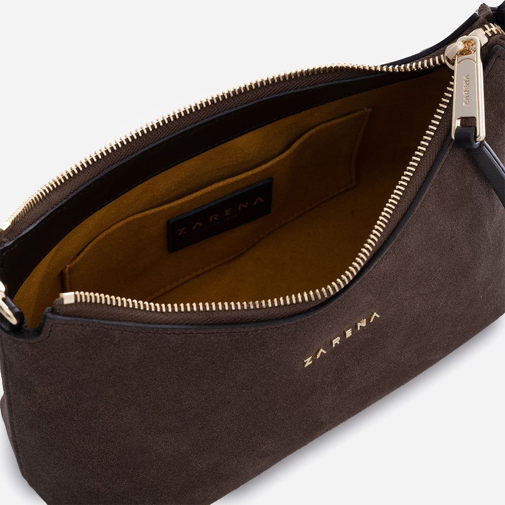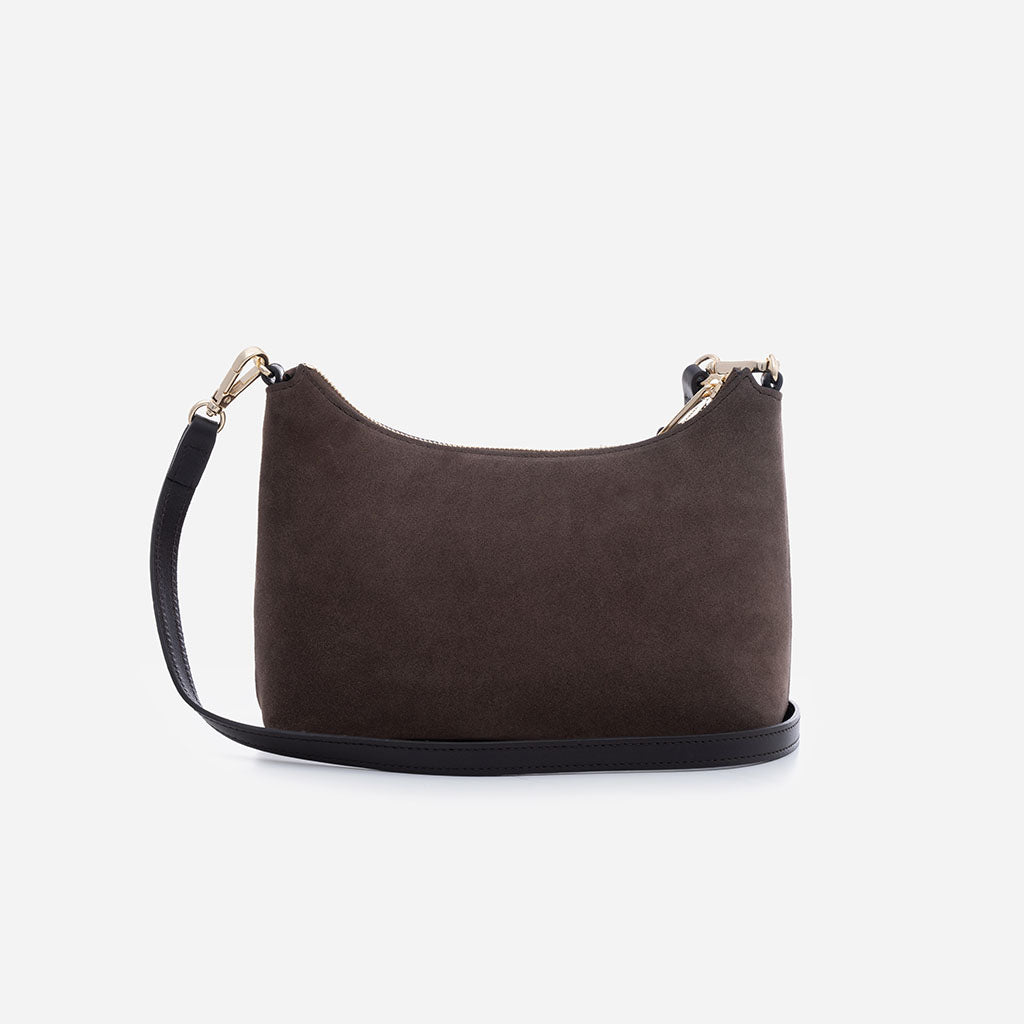 Amy - Geantă Crossbody Mică din Piele Întoarsă – Maro Închis