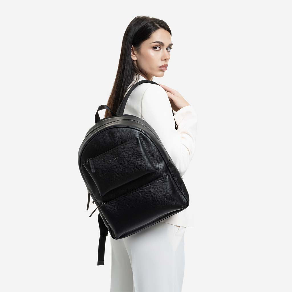 SANDRA - rucsac de piele - negru cu accesorii argintii