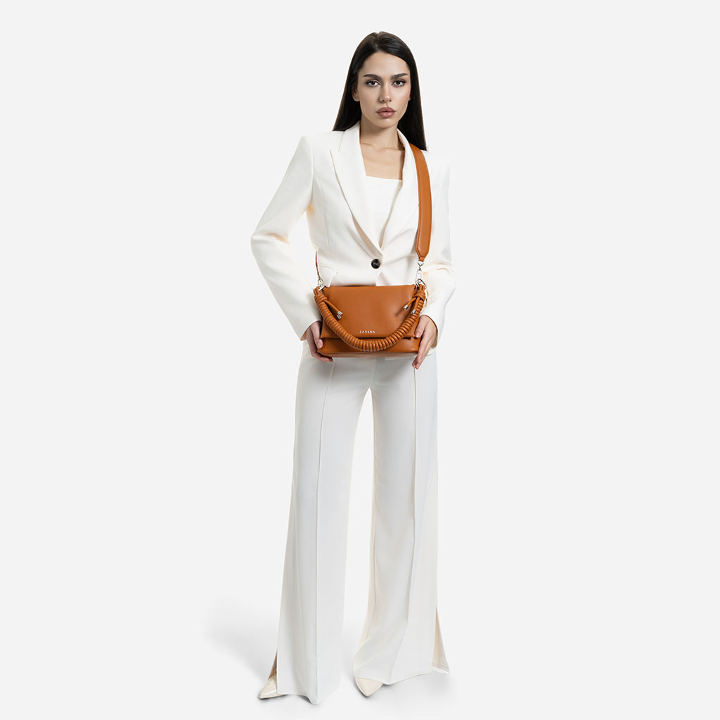 Geanta Sophia surprinde prin eleganța simplă și detaliile sale sofisticate. Mânerul împletit îi oferă un farmec aparte, iar breteaua crossbody o face ușor de purtat în orice moment al zilei. Este detaliul final care îți completează look-ul.